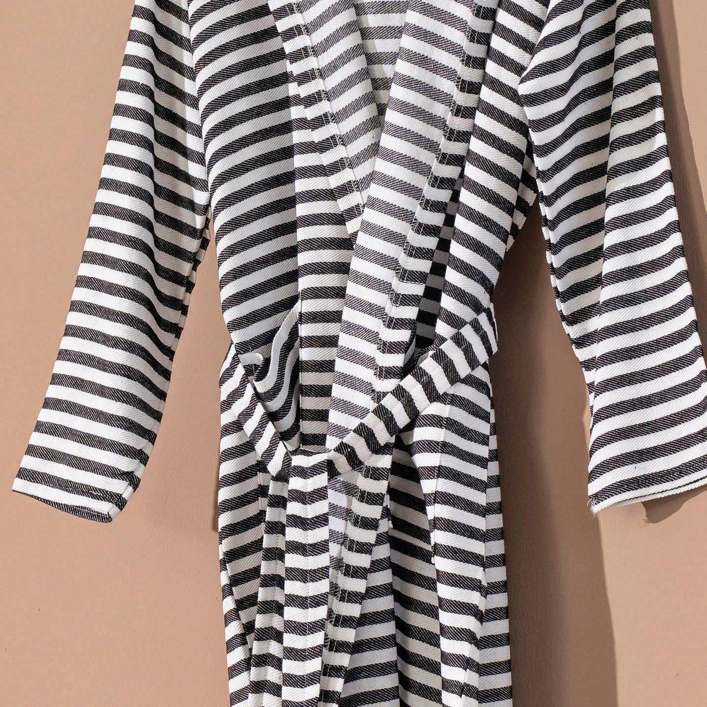 Kash Peshtemal Bademantel, türkische Baumwolle, Resort-Luxus, Naturbeige, Schwarz, weich, Unisex, leichter Bademantel, frotteefrei, flach gewebt, Vintage-Look