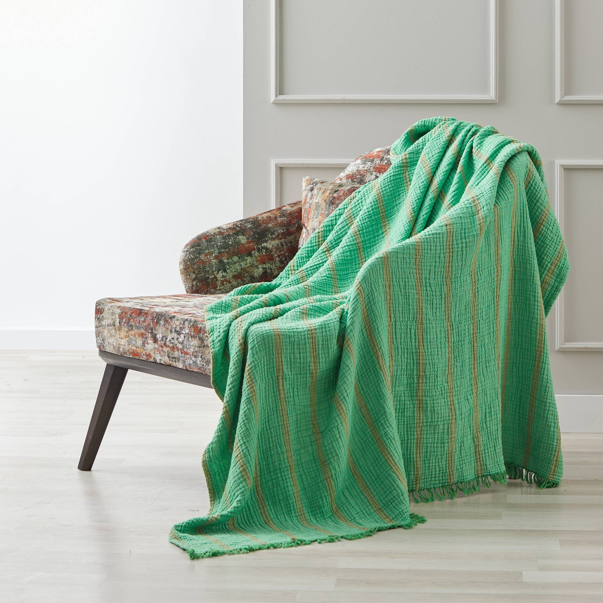 Introducing our luxurious Crinkle Gauze Muslin Cotton Blend Throw, a perfect fusion of style, comfort, and quality. Crafted with care in the textile-rich region of Turkey, these throw blankets are designed to elevate your home decor and provide you with the ultimate cozy experience.